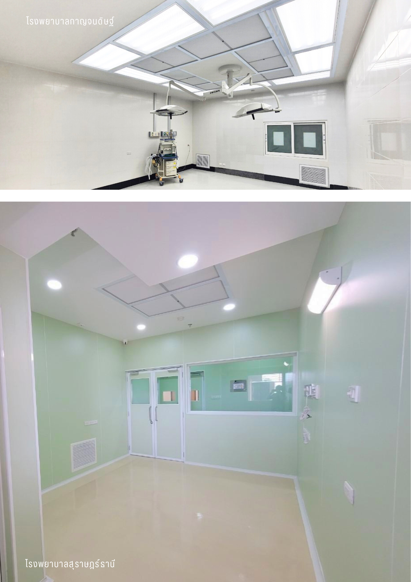 พื้น ผนัง ฝ้าเพดาน จะต้องเป็นวัสดุ ผิวเรียบ ไม่เก็บกักฝุ่น ซอกหลืบน้อย ทำความสะอาดง่าย เพื่อลดที่อยู่อาศัยของจุลินทรีย์ ควบคุมอุณหภูมิ และความชื้นสัมพัทธ์ให้เหมาะสม อัตราการเจริญเติบโตของจุลินทรีย์ตำ่ที่สุด